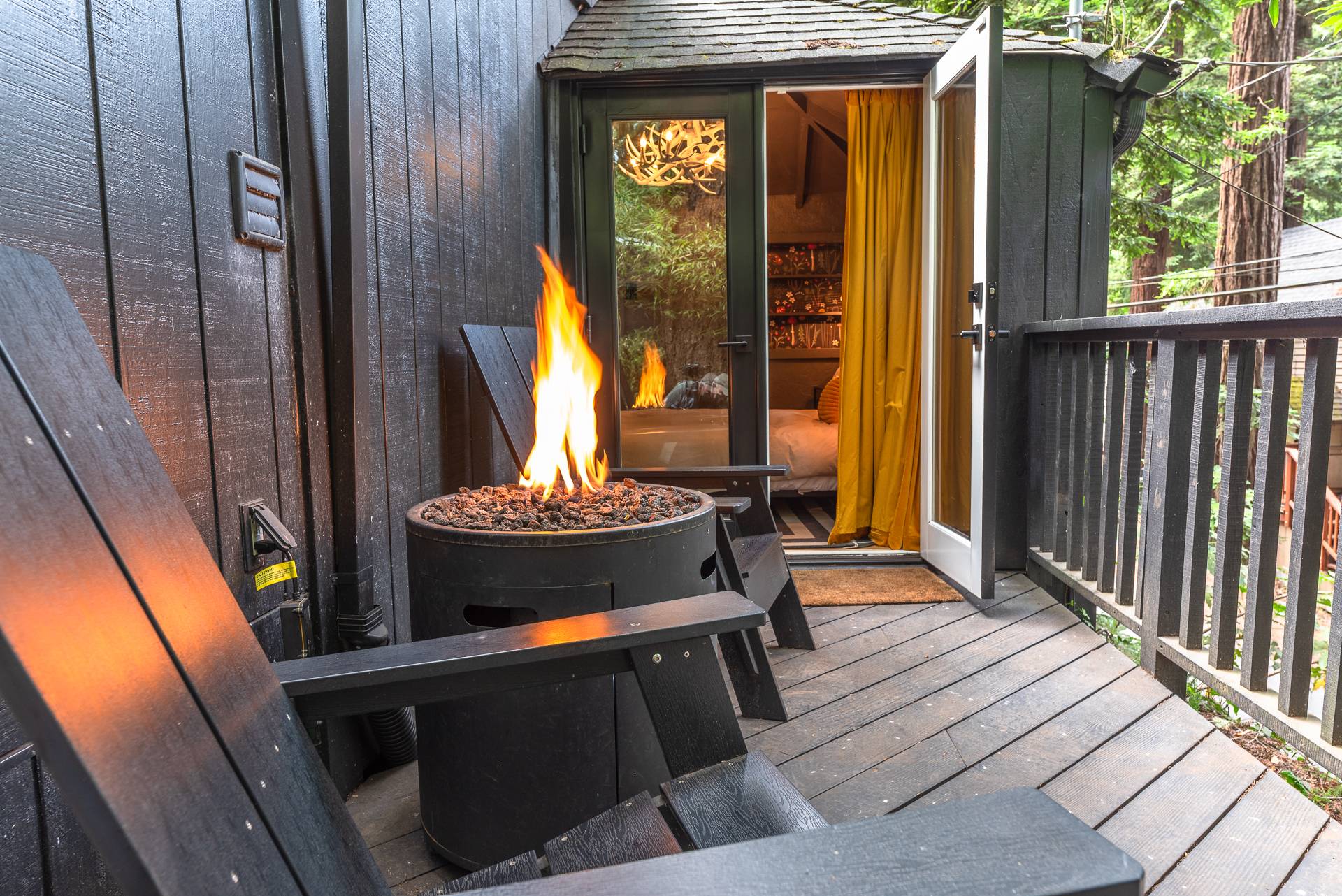 Enjoy an evening under the redwoods by the fire