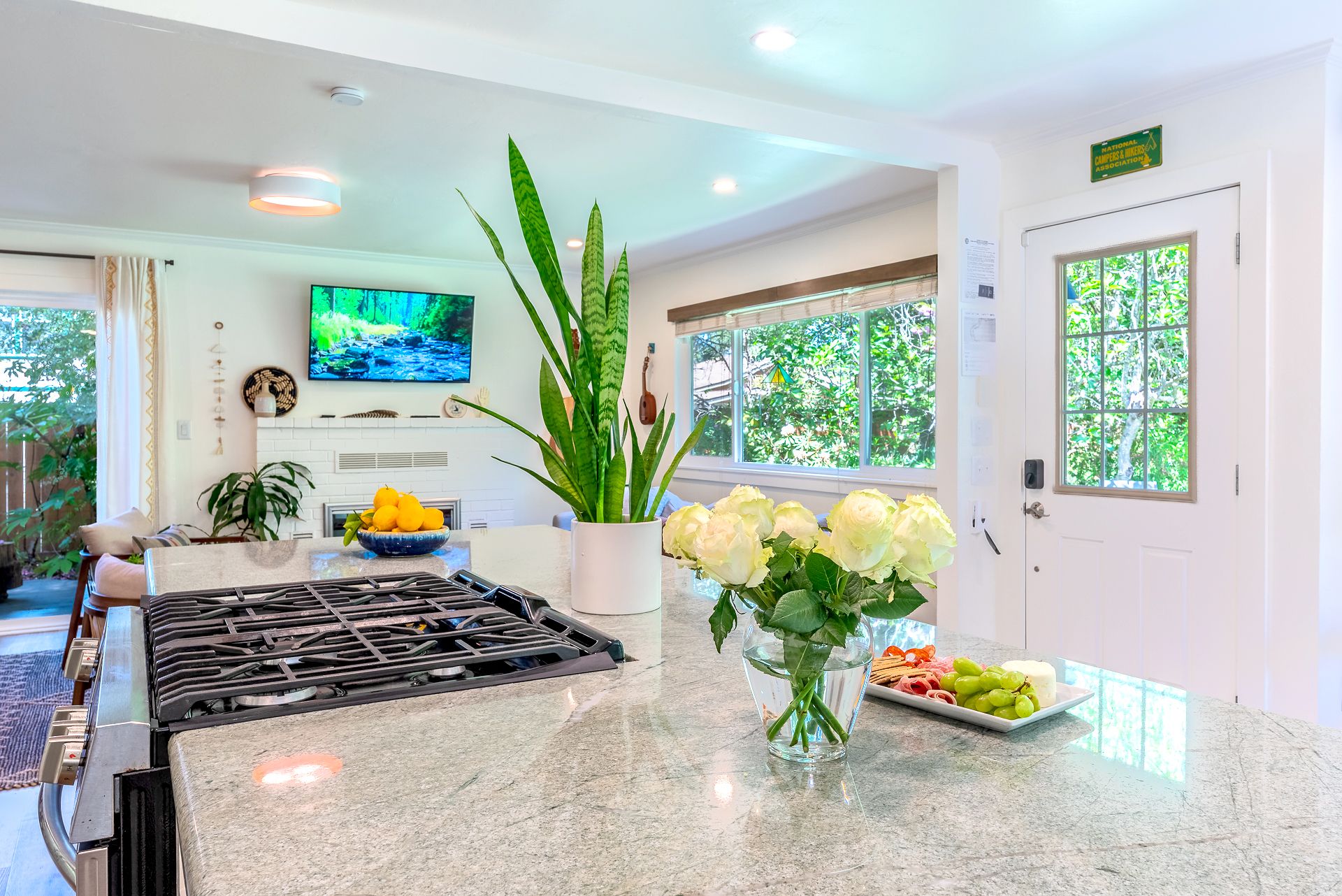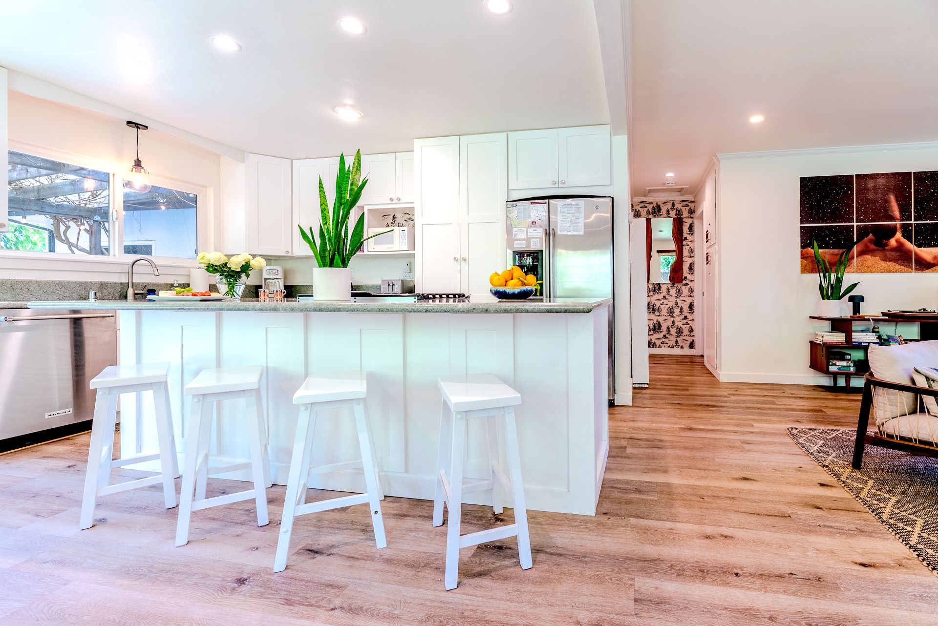 Enter the bungalow to the light-filled living room