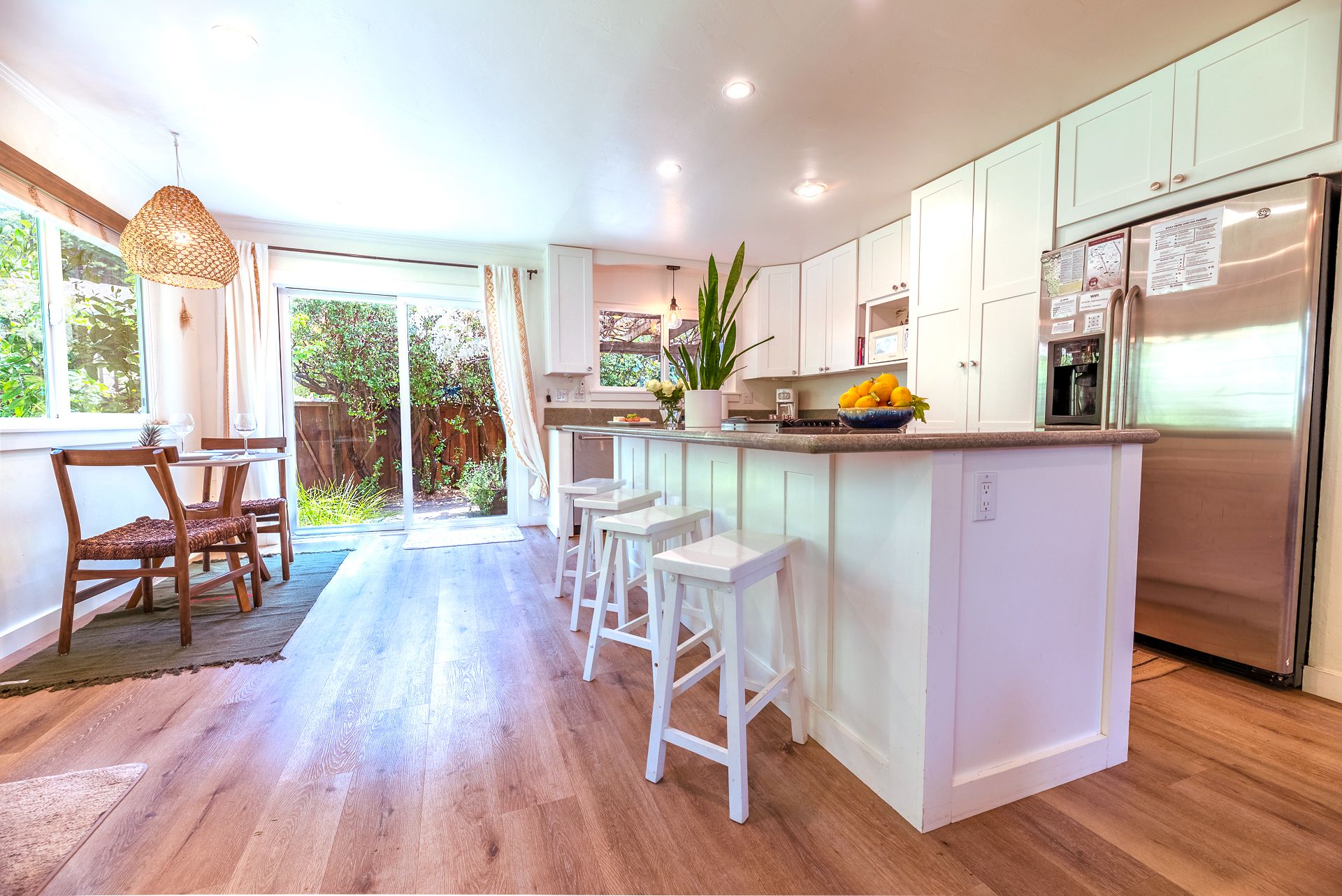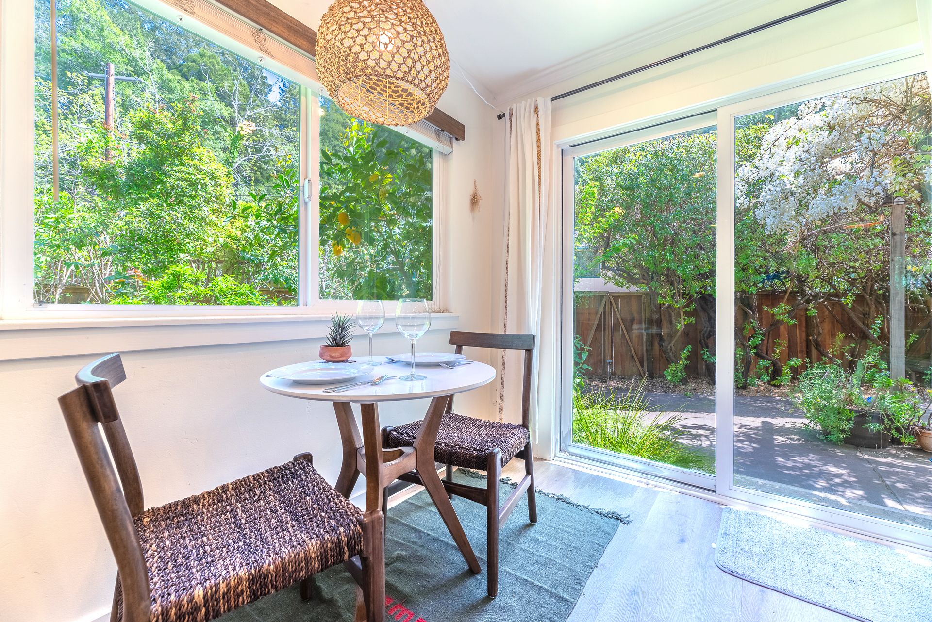 Or have a snack while enjoying the view of the beautiful backyard.