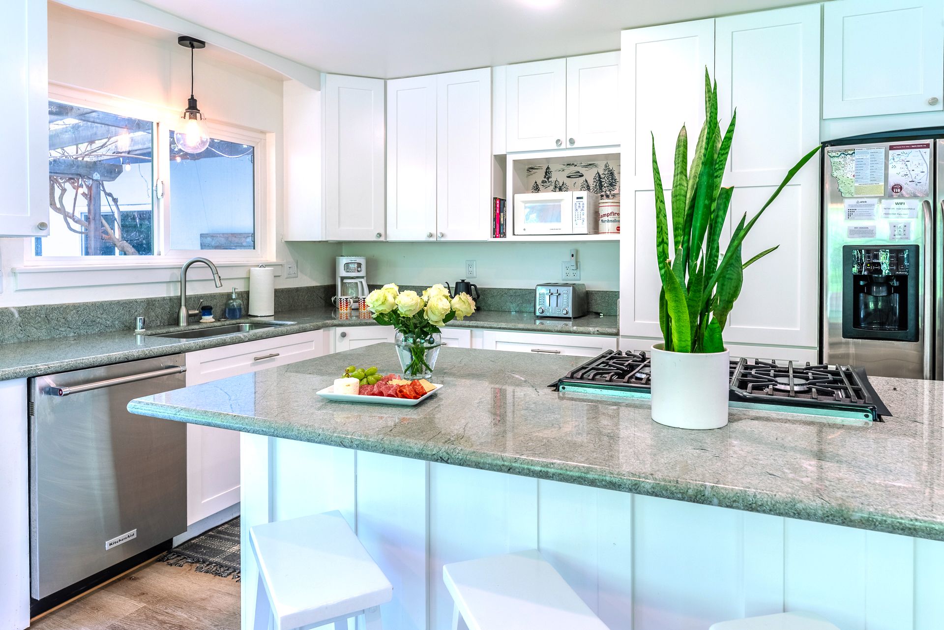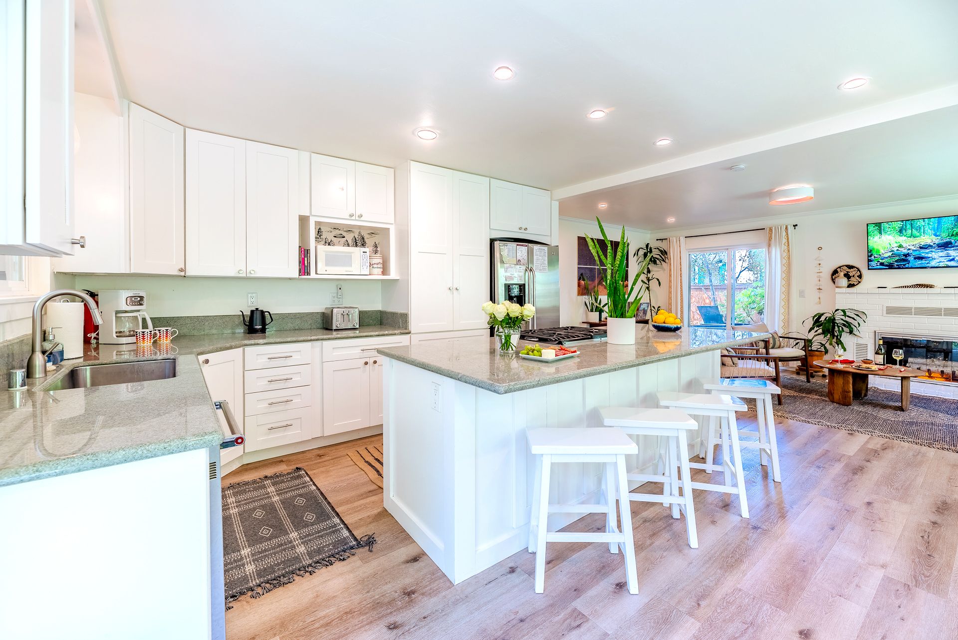 Sit at the breakfast bar and sip a glass of wine while keeping the chef company.
