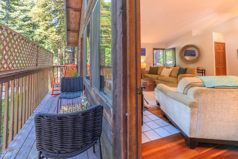 Reviewed on 2024-05-16 by DeborahStace's house is such a delight in the redwood forest. As the description indicates, it is a mile or so from the party town of Guerneville, but world's away. The house is located on a narrow, slightly winding road with closely spaced residences lining the steeply sloped forested roadway. You may need to pull over on occasion to allow an approaching car to pass.The driveway can accommodate 2 sedans, but 2 large trucks or SUVs would be tight.The house is built on two levels, with the living area accessed by climbing 17 exterior steps. The front door opens into a large living, dining, kitchen area comfortably furnished with seating and dining options for the 4 allowable guests. The kitchen is well-equipped with nice appliances and utensils.Both bedrooms have French doors that open onto the rear patio. The beds are comfortable, linens nice.The house was a perfect weekend getaway for 2 couples. It was nicely located for a day trip to Sonoma, as well as a walking tour of Healdsburg.
