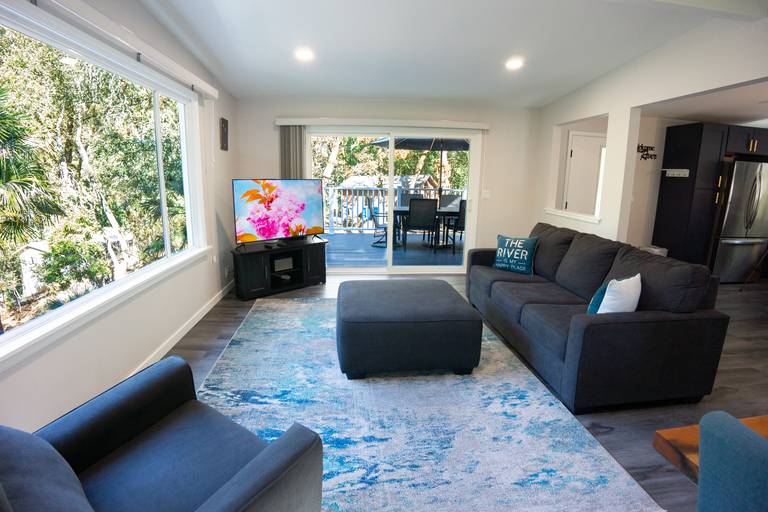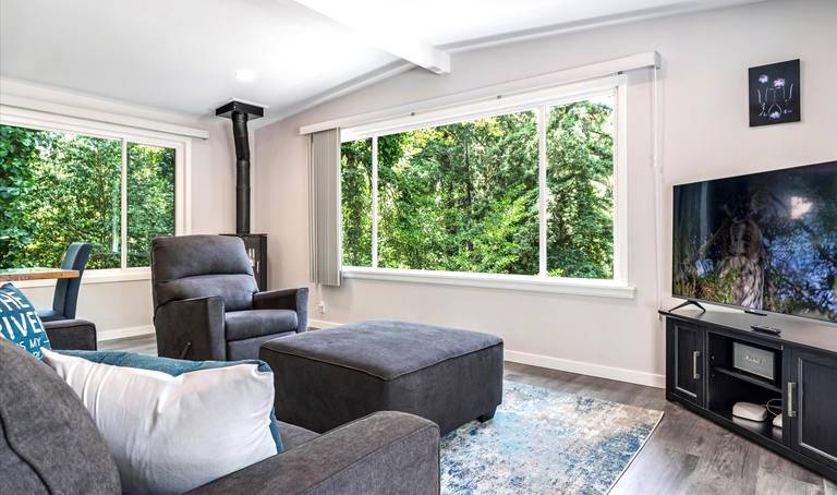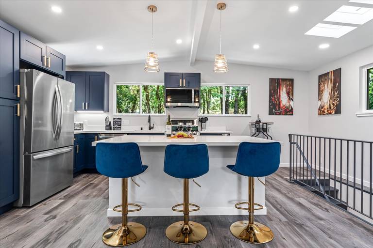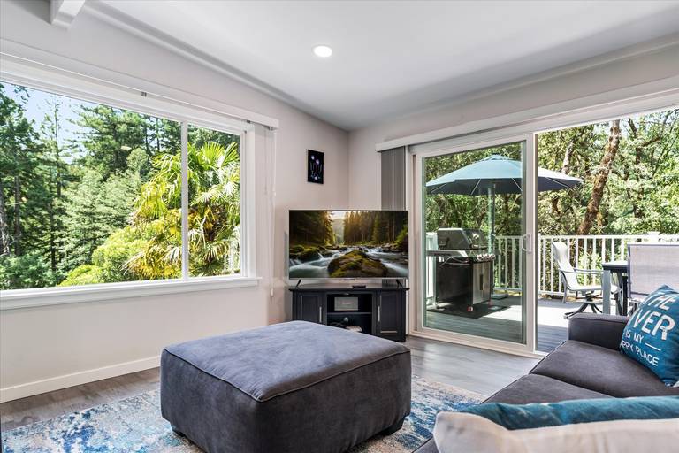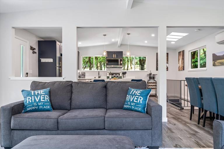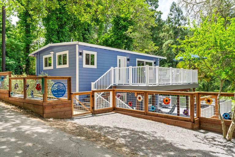 Nestled peacefully among the majestic redwoods, Cosmo Retreat offers the perfect blend of modern comfort and natural beauty. Just a 5-minute walk to the Russian River, this newly remodeled home provides everything you need for a relaxing and memorable getaway.