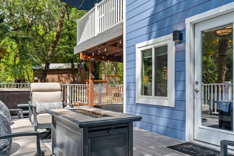Ideal for families, couples, or friends, this serene escape features fabulous decks overlooking the redwoods — the perfect spot for morning coffee or evening cocktails. Enjoy the hot tub, challenge your crew to a game on the bocce ball court, or gather around the fire table for stories under the stars.