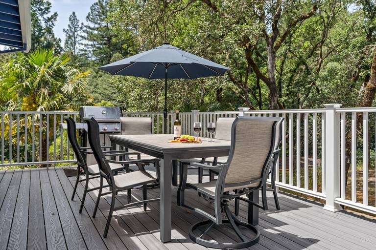- Upper Deck- Redwood views -Hot Tub, comfy furniture, outdoor dining & Gas BBQ