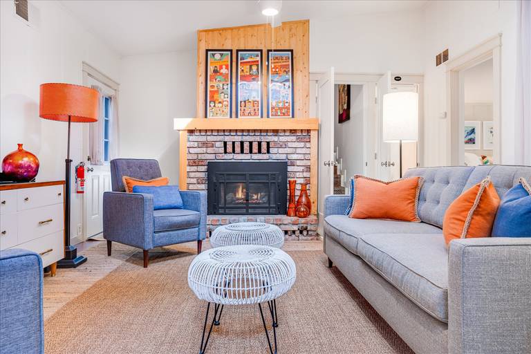 - Living room - Comfy furniture w/a fold-out sofa sleeper - Cozy Gas/Log Fireplace -Wall mounted art piece/Smart TV w/ streaming apps! Popular board games provided!