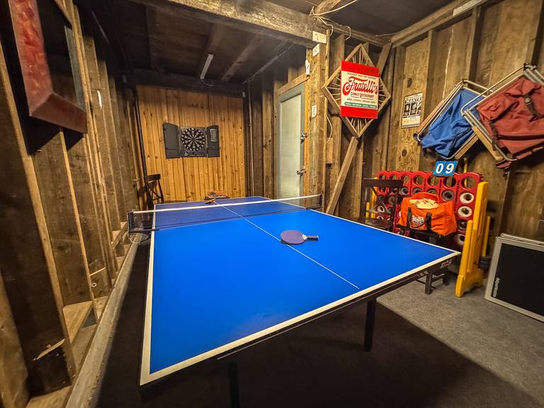 - Game Room-Ping-Pong table! Open up the barn doors to let the outside in, or even wheel the ping-pong table out into the yard to open up the gaming space!