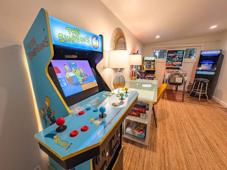 Reviewed on 2024-05-16 by AnonymousReally cute and bigger than it seems in the pictures place. The decorations are from some hardcore Disney and vintage 80's style stuff and we dug it! The kitchen was stocked with spices and dishes, including a ton of kid plates, cups and utensils. Thank you! Two bedrooms have skylights sooooo if you need darkness to sleep, you might find this hard--it was for our kids--even with the adorable sleep masks provided for us. 3 bedrooms and 1 bathroom on the main floor; go down the stairs for the second toilet and shower, along with a garage game room. The arcade is upstairs. Cute place and super nice hosting experience--would recommend!