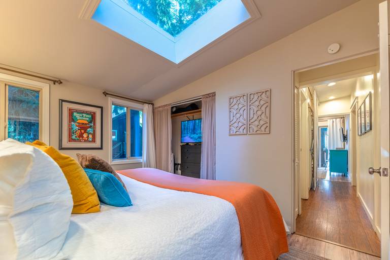 Reviewed on 2025-04-05 by Amanda S. , san francisco, CA United StatesAn adorable cottage in the woods with all the kitchen amenities you need as well as all the board games and video games your kids could wish for... There's a bubbled skylight in every room letting you experience the redwoods towering high above. The property was well maintained and when we did have small issues related to the fireplace insert, the rental agency was friendly and quick to resolve the issues (same day).