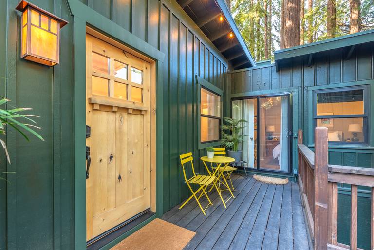 Reviewed on 2024-05-16 by AnonymousOur family of four (two adult kids, my husband and me) stayed here for a long weekend and it was more than we could have hoped for. It was clean, comfortable, and just the right size. There are so many options for spending time together: playing cornhole, sitting outside under the redwoods, making family dinners, and talking near the cozy fireplace. Our dog loved sleeping in front of the fireplace and he also had a fenced in yard. The location is super close to the river, and an easy drive to the downtown area. Loved the bookstore in town, by the way. Staying at Dhyana amidst the trees was something we won't forget.