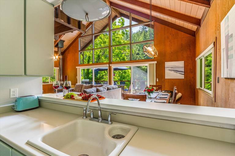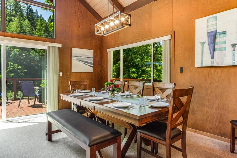Reviewed on 2024-05-07 by KristeneWe loved this home. It had everything we needed -- lots of space for the kids to stretch out in the loft, the foosball table was a nice surprise, big comfy couch and beds, ample seating on the deck w/beautiful views of the trees and river. I even got multiple visits by a hummingbird wanting to say hi. Loved how easy it was to get to Johnson's Beach, Armstrong woods, and downtown Guerneville for coffee and shopping... just minutes away. We really enjoyed our stay would love to come back!