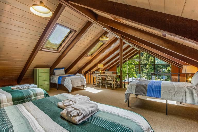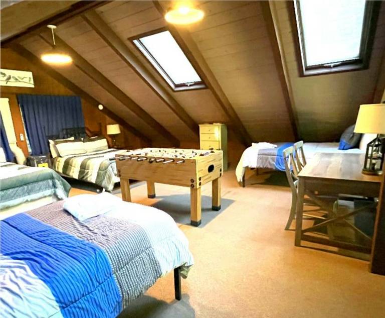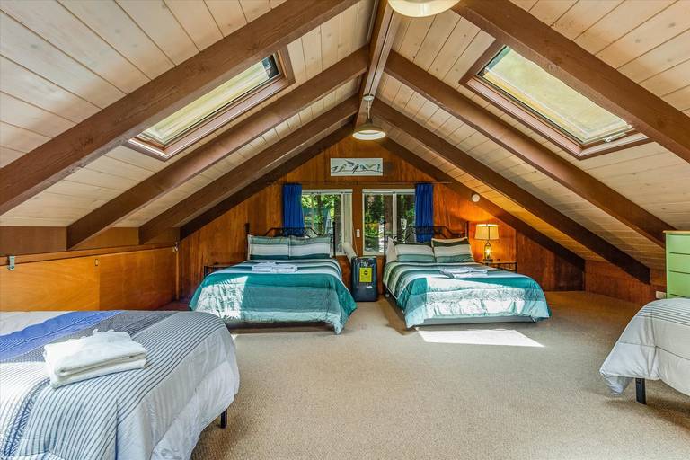 - Open loft area w/ multiple sleeping options: 2 Comfy Queen beds & 2 Twin beds