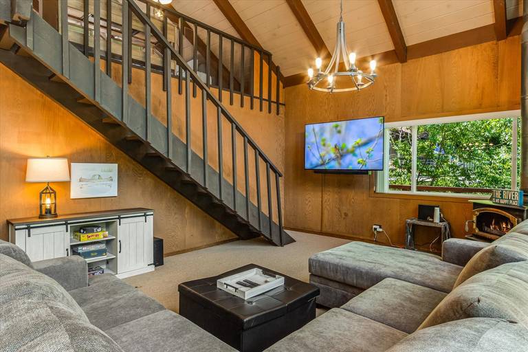 Lazy River Lodge is an absolute gem of a getaway, combining original cabin charm with modern upgrades. The home features comfortable, newer furnishings, a hot tub, a fun game room, and a large deck overlooking the river, perfect for relaxing and taking in the scenic surroundings.