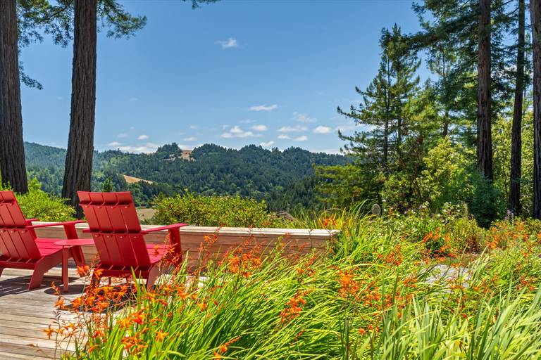If you’re seeking a dreamy personal resort that’s upscale, peaceful, and tranquil, look no further than Magic Madrone. This beautifully furnished, custom home sits high in the Cazadero Hills, offering expansive views of the Russian River Valley and towering Redwoods that are truly awe-inspiring.