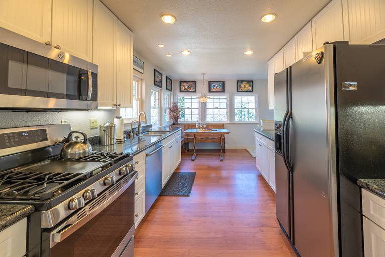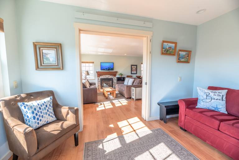 Reviewed on 2023-12-15 by Matthew F. , Sacramento, CA United StatesWe stayed in this rental for Thanksgiving and could not have been more pleased with the accommodations. There was tons of space for the 7 of us (4 adults 3 kids). The kitchen had everything we needed and more - even cast iron pans for cooking clams. The den was great for our kids. The beach is walking distance as long as you don't have too much stuff to carry. Parking was challenging with our large SUV but we made it work - only 2 small cars can fit in the driveway. Great little spot.