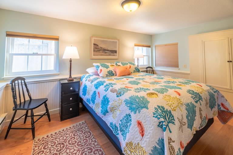 Bedroom 2 is downstairs with a cozy Queen Bed [24]