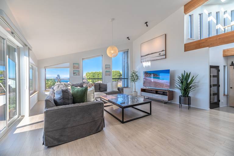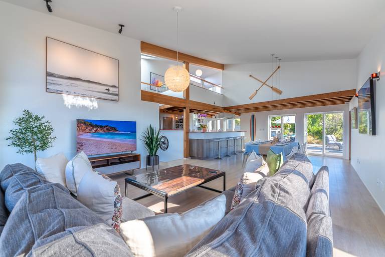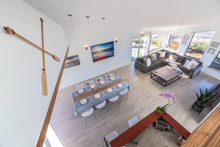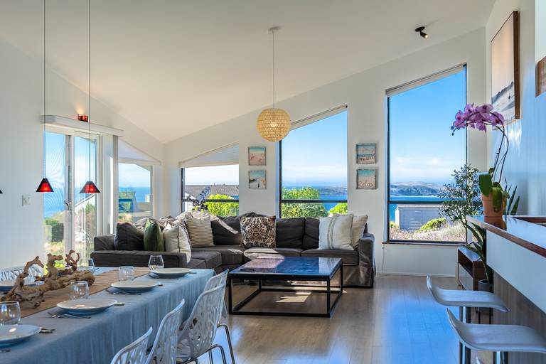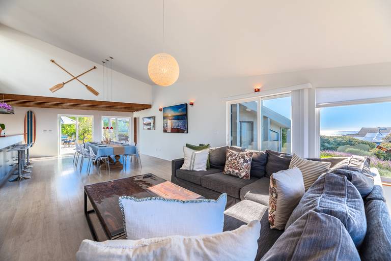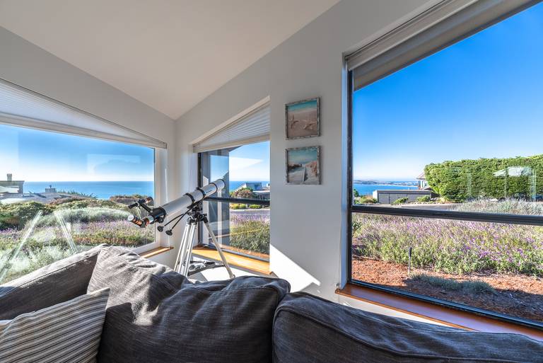 - Living Room - Beautiful, large open living area with sweeping views of Bodega head and the ocean, comfy couches, Smart TV and telescope for watching whales or the night sky.