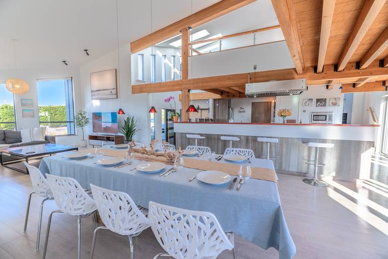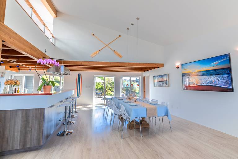 - Dining area - Large dining table perfect for meals or game night and a breakfast bar for quick snacks!