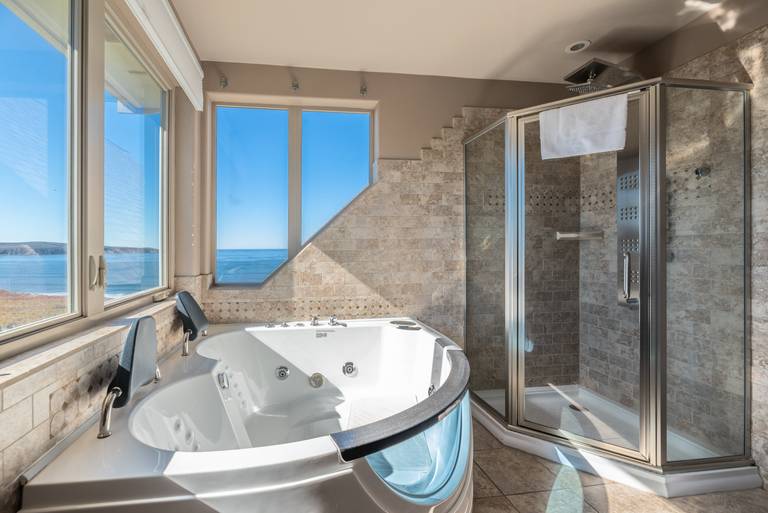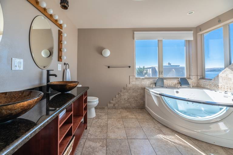 Reviewed on 2022-12-07 by Michael E. , Citrus Heights, CA United StatesThe living room, dining room, and kitchen area are very relaxing and beautiful full views of the ocean. Loved quick jaunt to beach right down the hill. The bed was pretty stiff in master. Showers need instructions on how to use. Jacuzzi spa in upper bedroom was not functional or if it was it was not understandable to use. The outside hot tub was very enjoyable to use and have a view of the ocean as you sat in it. Really comfortably fits 8 people as the pull out in the living room is a pain to use as both bedroom and living area each day but doable. Pictures seem to indicate the game room had a bed in it but it's the garage and then there is a loft above garage where there is another sitting room but pretty cold during winter months to use as a sitting room as above and open to garage. Garage is separate from the house. The heat was also locked so lowest could go was 62 and sometimes that was too hot for the day. Overall a nice place to use with views but layout of house would of been have been good to see online. But would use again if open as functional.