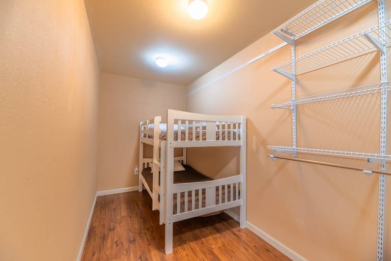 - Bunk beds for kids or extra sleeping off of the upstairs primary bedroom. (Meant for kids. Its a very large walk in closet.)